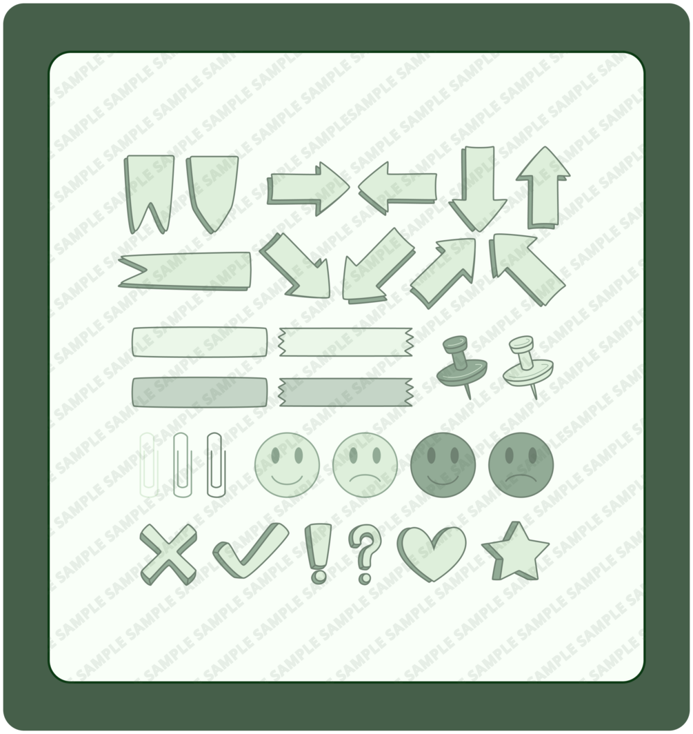 - A fun mix of arrows, icons, and symbols, great for bringing personality to your notes and planners.